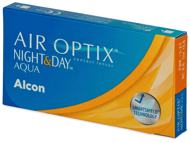 Контактните лещи Air Optix Night and Day Aqua от Alcon са новият подобрен модел на Air Optix Night and Day и са проектирани за непрекъснато носене. Одобрени са за продължителна употреба до 30 дни без сваляне от окото след консултация с очен специалист. Това е "най-дишащият модел" контактни лещи - създадени са от патентован материал, гарантиращ до 6 пъти повече кислородна пропускливост от обикновените меки контактни лещи - 140 Dk (175 Dk/t). Това, заедно с ултрагладката им повърхност, съхраняваща влагата и предпазваща от натрупване на депозити, е причината това да бъдат най-препоръчваните от очните специалист лещи за продължително носене.