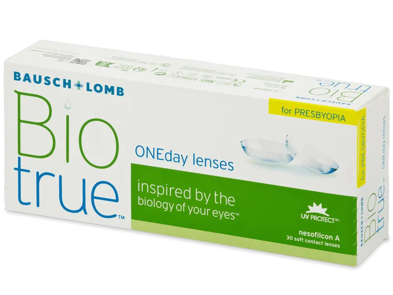 Biotrue ONEday for Presbyopia са мултифокални контактни лещи производство на Bausch & Lomb , специално предназначени за решаване на проблеми със зрението, причинени от пресбиопия (далекогледство). Пресбиопията или сенилна пресбиопия е дефект на зрението очертава като естествена последица от застаряването на човешкото тяло и започва да се появи около четиридесетата година от живота. Пресбиопията се влошава способността да се фокусира върху близки обекти.