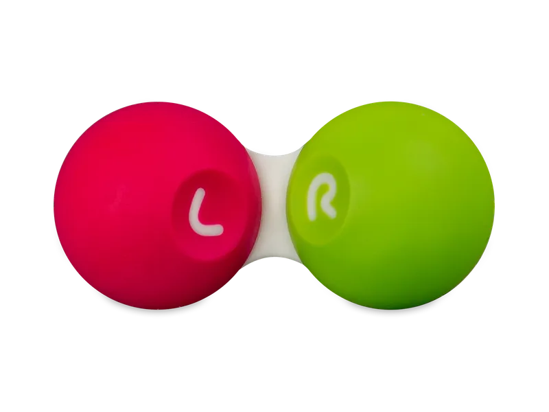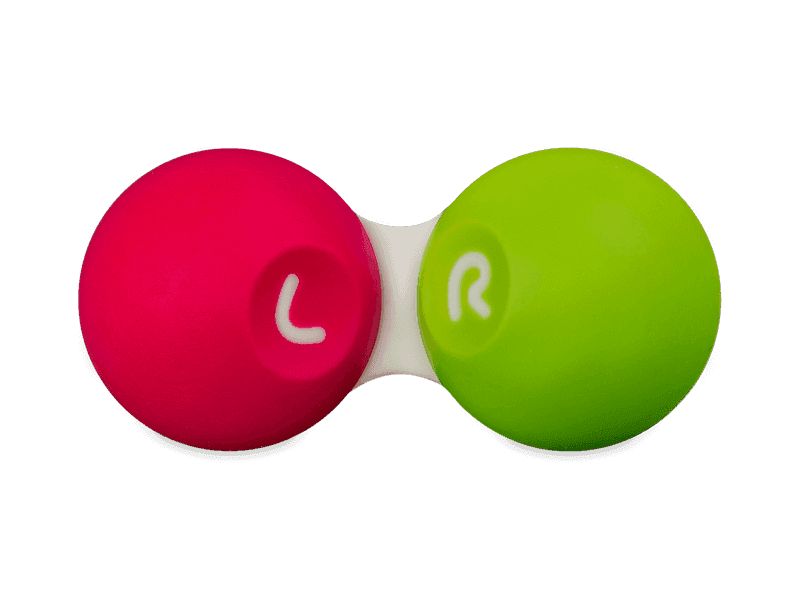 Описание на розово-зелен контейнер за контактни лещи